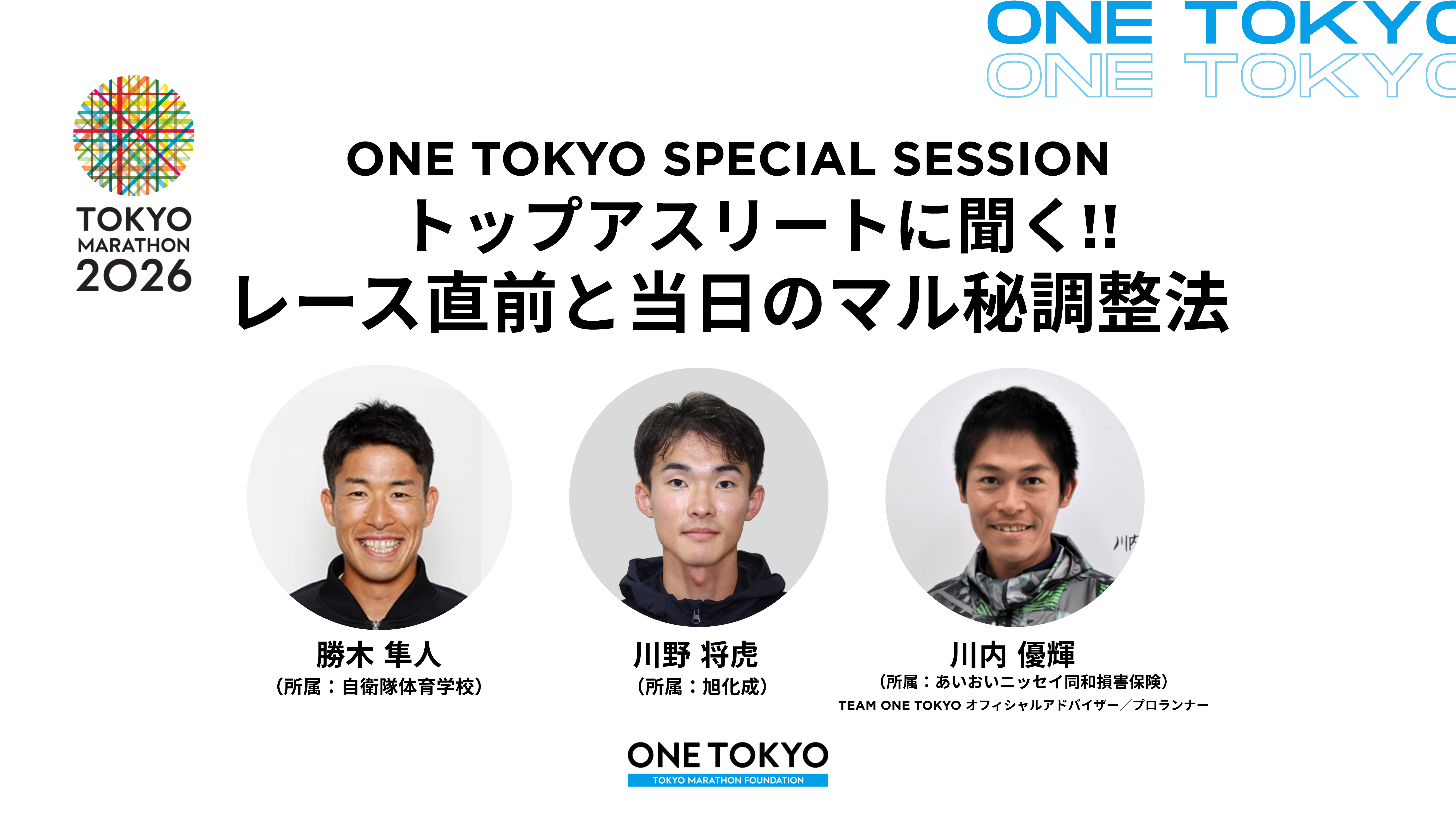 セミナー2 182026 WED【ONE TOKYO SPECIAL SESSION】トップアスリートに聞く!!レース直前と当日のマル秘調整法受付期間:2/6(金) 17:00~2/15(日) 23:59