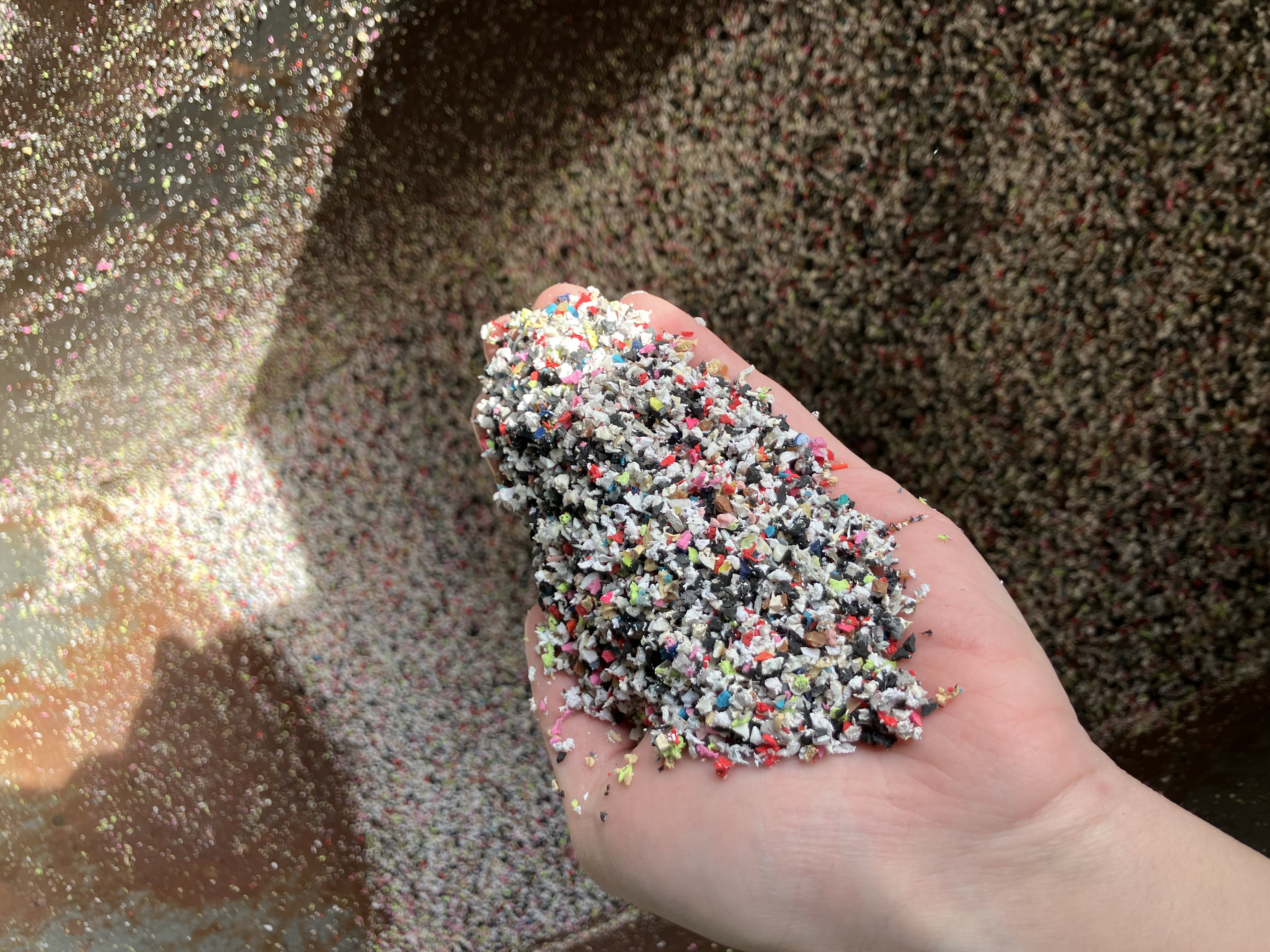 回収不可となったシューズのソールや使用済みタイヤを活用し、